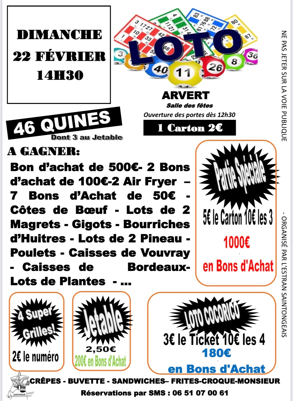 – Loto Cocorico : 3 € le ticket / 10 € les 4 (180 € en bons d’achat)